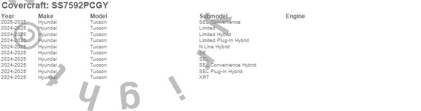 Below is an abbreviated list of applications for the SeatSaver Custom Seat Cover.Tucson, Hyundai, 2025, 2024