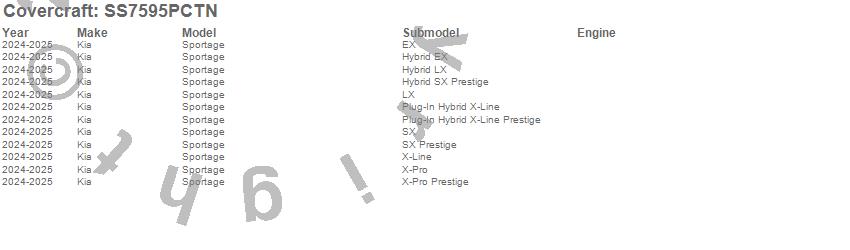 Below is an abbreviated list of applications for the SeatSaver Custom Seat Cover.Sportage, Kia, 2025, 2024