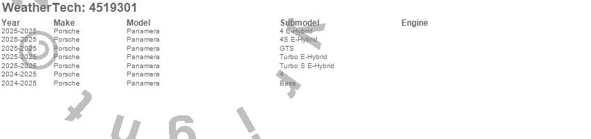 Below is an abbreviated list of applications for the FloorLiner DigitalFit.Panamera, Porsche, 2026, 2025, 2024