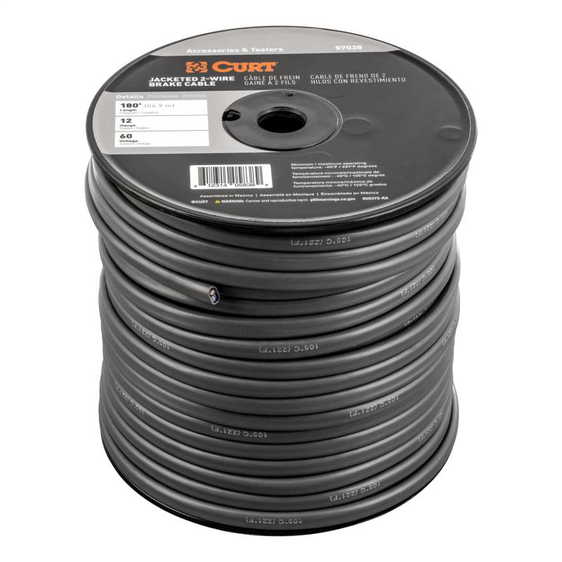 Buy this Trailer Brake Cable Wire CURT 57038 2-Wire - Jacketed - 180 ft Spool - 12 Gauge Wire here at SVCustoms.com an authorized CURT Trailer Wire dealer and distributor.