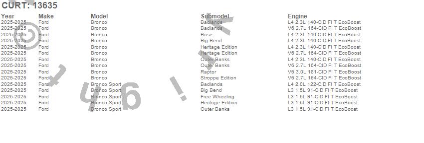 Below is an abbreviated list of applications for the Class III 2 in. Receiver Hitch.Bronco Sport, Ford, 2025