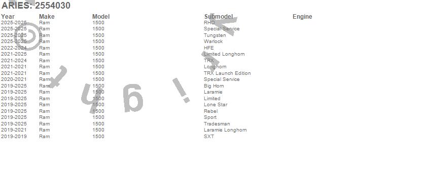 Brand: ARIESPart Number: 2554030Running Board Type: 6 in. x 91 in. - Black Steel - with Vehicle-Specific VersaTracUPC: 849055035250
