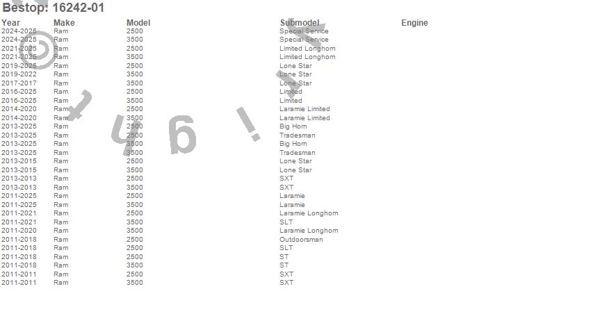 Below is an abbreviated list of applications for the EZ Fold Soft Tri-Fold Tonneau Cover.2500, 3500, Ram, 2025, 2024, 2023, 2022, 2021, 2020, 2019, 2018, 2017, 2016, 2015, 2014, 2013, 2012, 2011