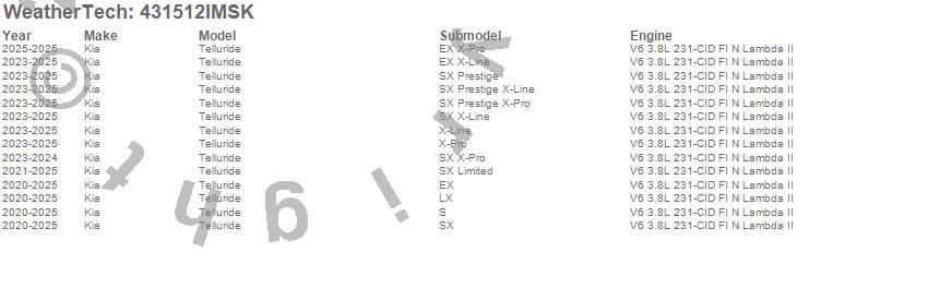 Below is an abbreviated list of applications for the SeatBack Cargo Liner HP w/Bumper Protector.Telluride, Kia, 2025, 2024, 2023, 2022, 2021, 2020