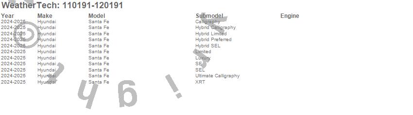 Below is an abbreviated list of applications for the MudFlap No-Drill DigitalFit MudFlap Kit.Santa Fe, Hyundai, 2026, 2025, 2024