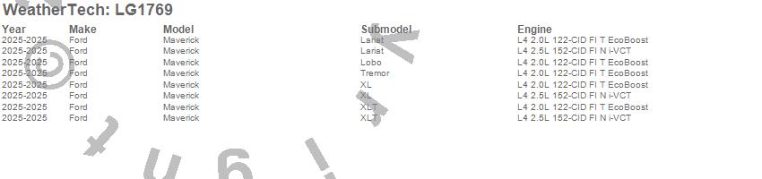 Below is an abbreviated list of applications for the LampGard.Maverick, Ford, 2025