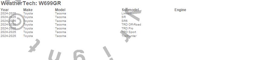 Below is an abbreviated list of applications for the All Weather Floor Mats.Tacoma, Toyota, 2025, 2024