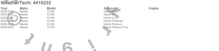 Below is an abbreviated list of applications for the FloorLiner DigitalFit.CX-50, Mazda, 2026, 2025
