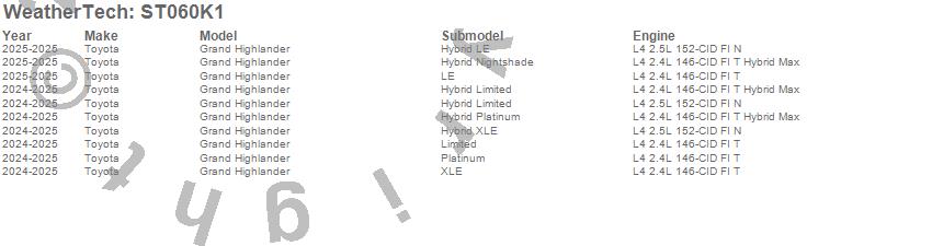 Below is an abbreviated list of applications for the Sill Protector.Grand Highlander, Toyota, 2026, 2025, 2024