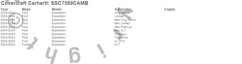 Below is an abbreviated list of applications for the Covercraft Carhartt SeatSaver.Expedition, Ford, 2024