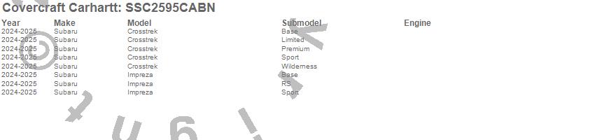 Below is an abbreviated list of applications for the Covercraft Carhartt SeatSaver.Crosstrek, Impreza, Subaru, 2025, 2024