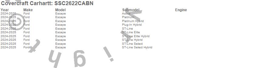 Below is an abbreviated list of applications for the Covercraft Carhartt SeatSaver.Escape, Ford, 2026, 2025, 2024