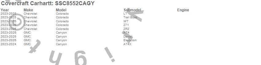 Below is an abbreviated list of applications for the Covercraft Carhartt SeatSaver.Canyon, Colorado, Chevrolet, GMC, 2026, 2025, 2024, 2023