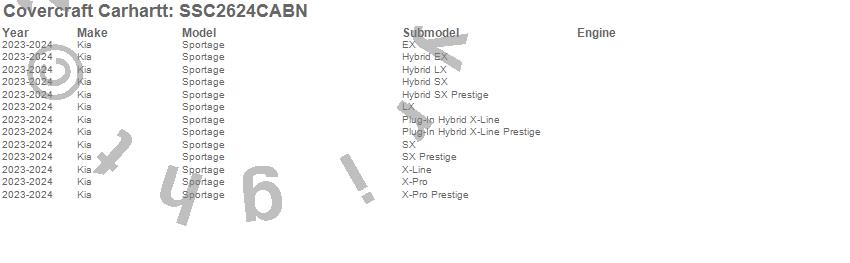 Below is an abbreviated list of applications for the Covercraft Carhartt SeatSaver.Sportage, Kia, 2025, 2024, 2023