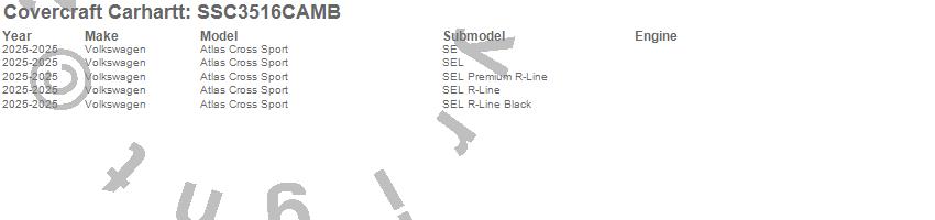 Below is an abbreviated list of applications for the Covercraft Carhartt SeatSaver.Atlas Cross Sport, Volkswagen, 2025