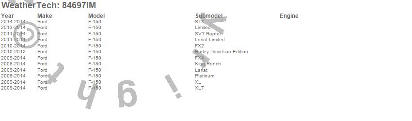 Below is an abbreviated list of applications for the Side Window Deflector Set.F-150, Ford, 2014, 2013, 2012, 2011, 2010, 2009