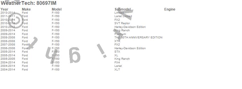 Below is an abbreviated list of applications for the Side Window Deflector.F-150, Ford, 2014, 2013, 2012, 2011, 2010, 2009, 2008, 2007, 2006, 2005, 2004