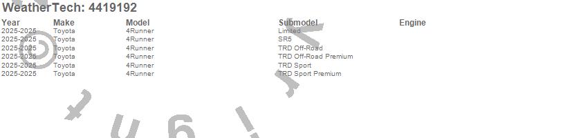 Below is an abbreviated list of applications for the FloorLiner DigitalFit.4Runner, Toyota, 2025