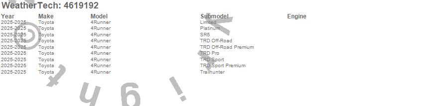 Below is an abbreviated list of applications for the FloorLiner DigitalFit.4Runner, Toyota, 2025