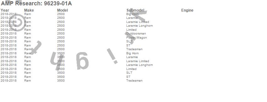 Below is an abbreviated list of applications for the Powerstep Vision.2500, 3500, Ram, 2018