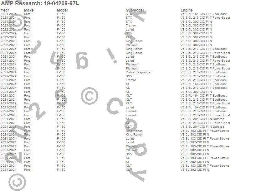 Below is an abbreviated list of applications for the PowerStep Xtreme Wire Harness.F-150, Ford, 2024, 2023, 2022, 2021