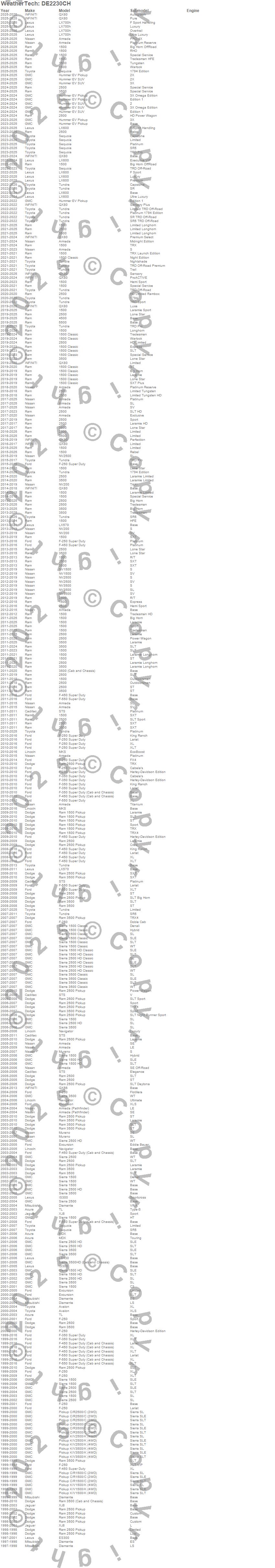Below is an abbreviated list of applications for the Seat Protector.1500, 1500 Classic, 2500, 3500, 4500, 5500, Armada, Armada (Pathfinder), Avalon, C1500 Pickup, C2500 Pickup, C3500 Pickup, Diamante, ES300, Excursion, F-250, F-250 Super Duty, F-350, F-350 Super Duty, F-450 Super Duty