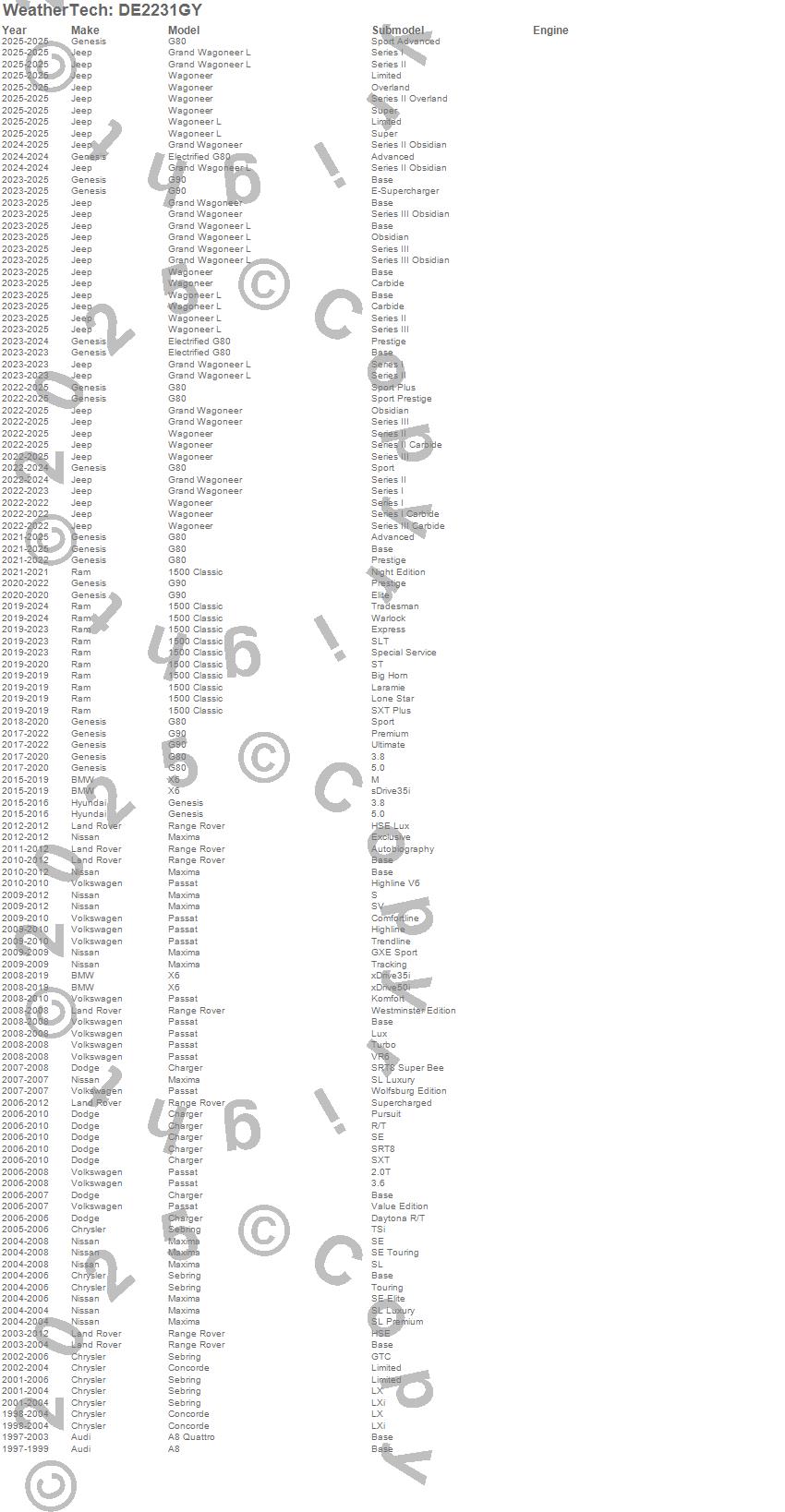 Below is an abbreviated list of applications for the Seat Protector.1500 Classic, A8, A8 Quattro, Charger, Concorde, Electrified G80, G80, G90, Genesis, Grand Wagoneer, Grand Wagoneer L, Maxima, Passat, Range Rover, Sebring, Wagoneer, Wagoneer L, X6, Audi, BMW