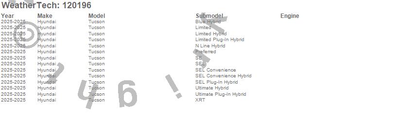 Below is an abbreviated list of applications for the MudFlap No-Drill DigitalFit.Tucson, Hyundai, 2025