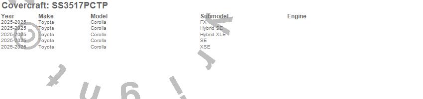 Below is an abbreviated list of applications for the SeatSaver Custom Seat Cover.Corolla, Toyota, 2025