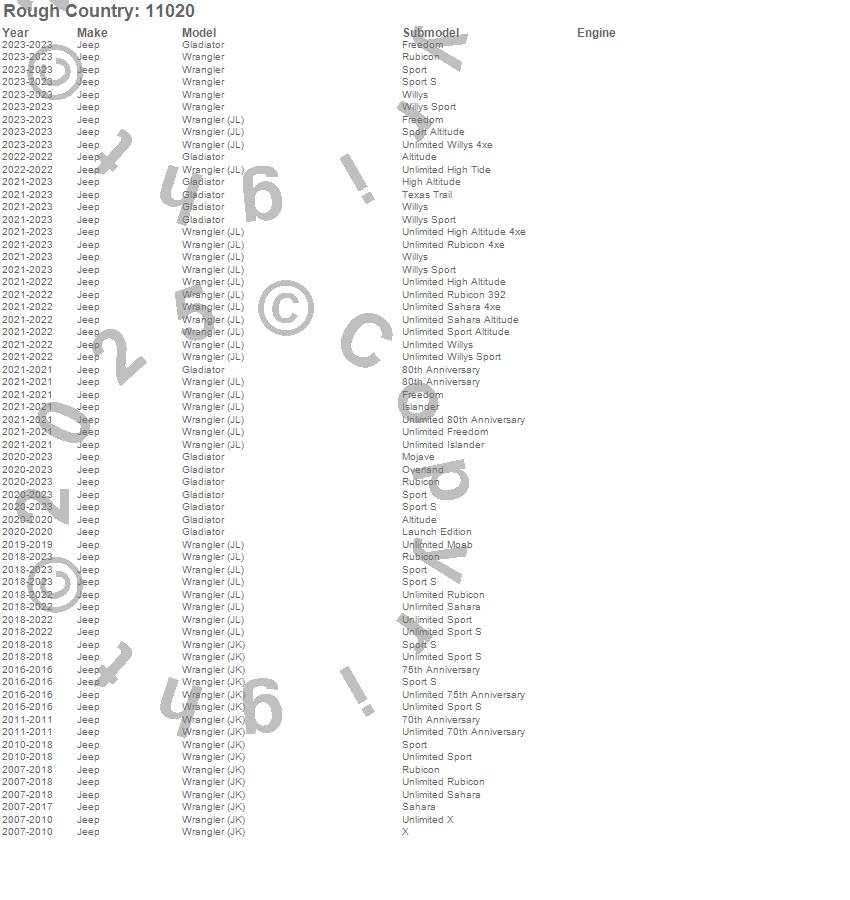 Brand: Rough CountryPart Number: 11020Sway Bar Quick Disconnect End Link Type: For 3.5-6 in. Lift - Incl. Quick Disconnects - Frame BracketsUPC: 840269973048