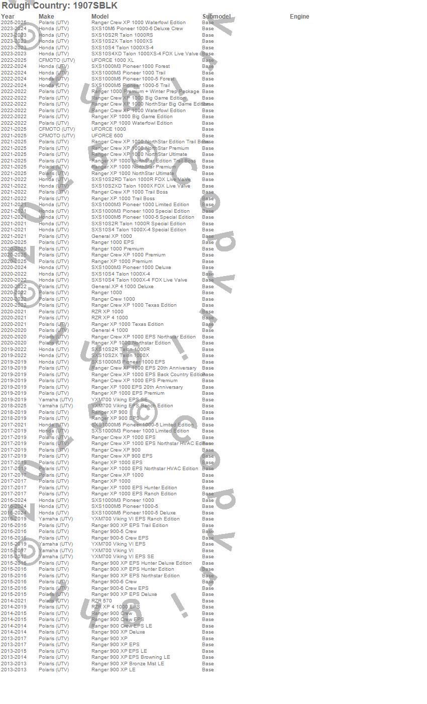 Below is an abbreviated list of applications for the Wheel Installation Kit.General 4 1000, General XP 1000, General XP 4 1000 Deluxe, Ranger 1000, Ranger 1000 EPS, Ranger 1000 Premium, Ranger 1000 Premium + Winter Prep Package, Ranger 900 Crew, Ranger 900 Crew EPS, Ranger 900 Crew EPS LE, Ranger 900 XP, Ranger 900 XP Bronze Mist LE, Ranger 900 XP Deluxe, Ranger 900 XP EPS, Ranger 900 XP EPS Browning LE, Ranger 900 XP EPS Deluxe, Ranger 900 XP EPS Hunter Deluxe Edition, Ranger 900 XP EPS Hunter Edition, Ranger 900 XP EPS LE, Ranger 900 XP EPS Northstar Edition