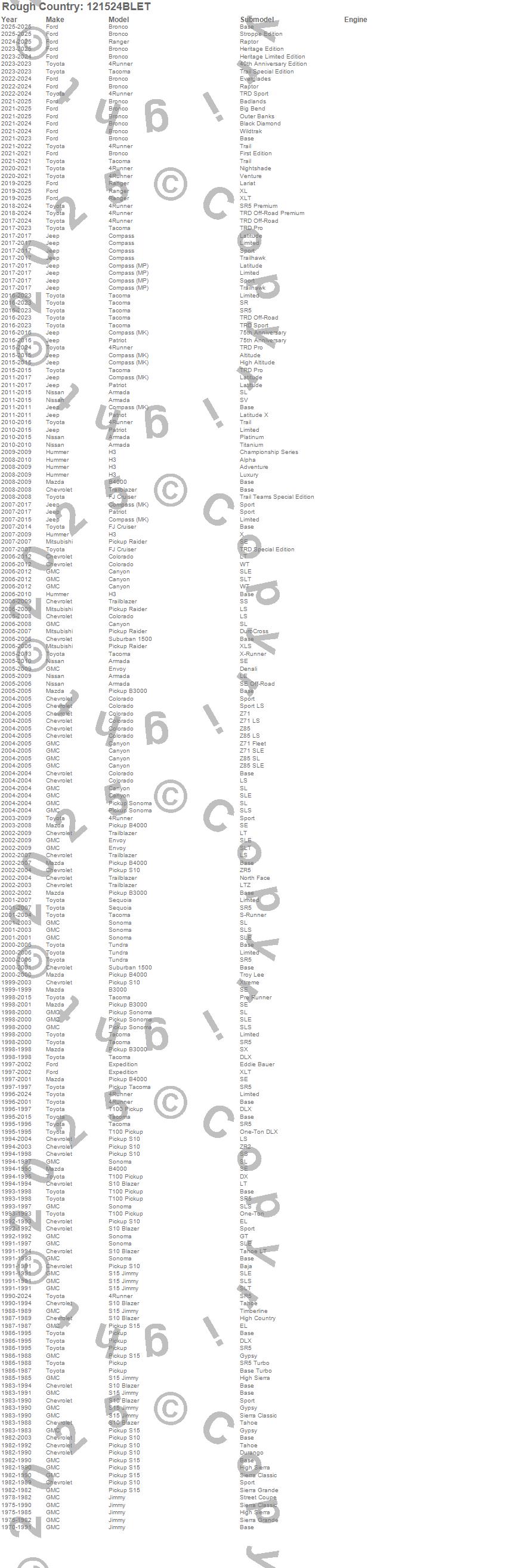 Below is an abbreviated list of applications for the Wheel Installation Kit.4Runner, Armada, B3000, B4000, Bronco, Canyon, Colorado, Compass, Envoy, Expedition, FJ Cruiser, H3, Jimmy, Patriot, Pickup, Raider, Ranger, S10 Blazer, S10 Pickup, S15 Jimmy
