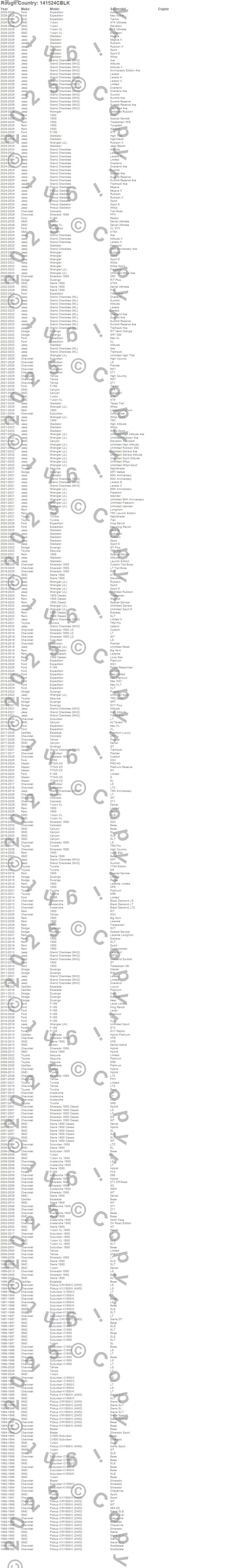 Below is an abbreviated list of applications for the Wheel Installation Kit.1500, 1500 Classic, Avalanche, Avalanche 1500, Blazer, C1500 Pickup, C1500 Suburban, Canyon, Colorado, Durango, Escalade, Expedition, F-150, Gladiator, Grand Cherokee, Grand Cherokee (WK2), Grand Cherokee (WL), K1500, K1500 Pickup, K1500 Suburban