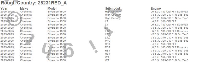 Below is an abbreviated list of applications for the Suspension Lift Kit w/Shocks.Silverado 1500, Chevrolet, 2025
