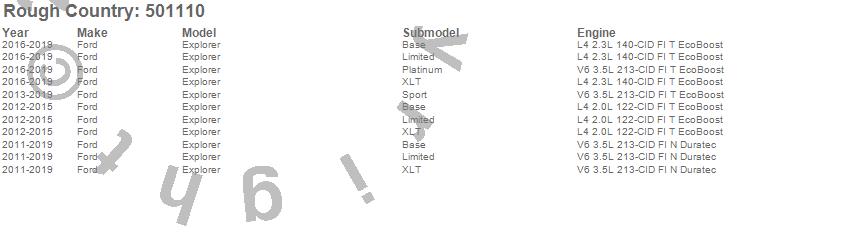 Below is an abbreviated list of applications for the Leveling Strut Kit.Explorer, Ford, 2019, 2018, 2017, 2016, 2015, 2014, 2013, 2012, 2011