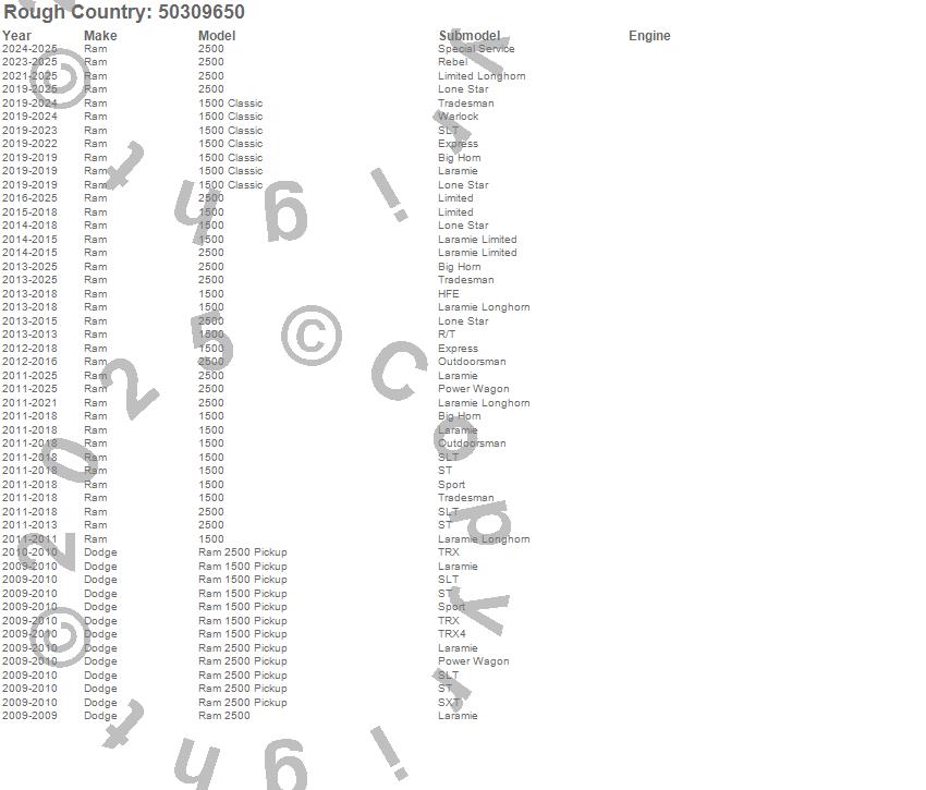 Brand: Rough CountryPart Number: 50309650Tonneau Cover Type: 6 ft. 4 in. Bed - Bulkhead Seal - Tailgate Locking - Lightweight Interlocking Aluminum SlatUPC: 840269964046