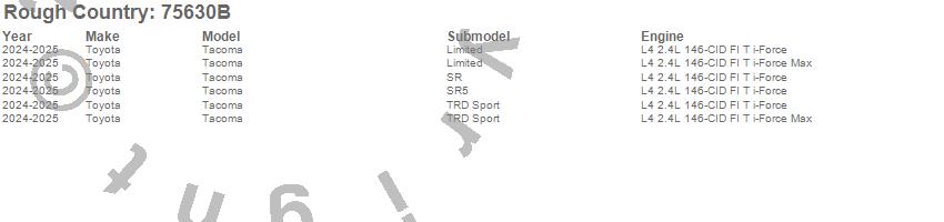 Below is an abbreviated list of applications for the Suspension Lift Kit w/Shocks.Tacoma, Toyota, 2025, 2024
