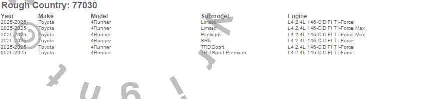 Below is an abbreviated list of applications for the Suspension Lift Kit w/Shocks.4Runner, Toyota, 2025