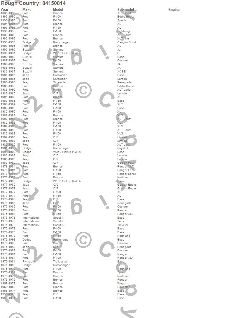 Below is an abbreviated list of applications for the Series 84 Wheel.Bronco, CJ5, CJ7, F-100, F-150, Ramcharger, Samurai, Scout II, Scrambler, Trailduster, W150 Pickup, W350 Pickup, Dodge, Ford, International, Jeep, Plymouth, Suzuki, 1996, 1995