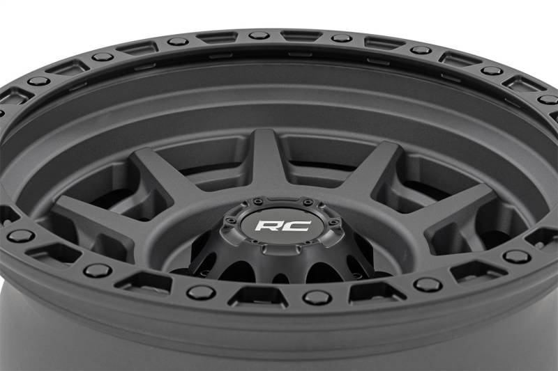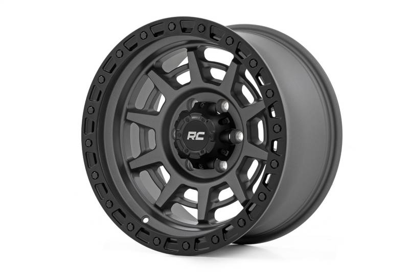 Brand: Rough CountryPart Number: 85172512Wheel -Aluminum Type: Simulated Beadlock - Gunmetal Gray/Black - 17x9 - 6x5.5 - 25mm OffsetUPC: 840269966699