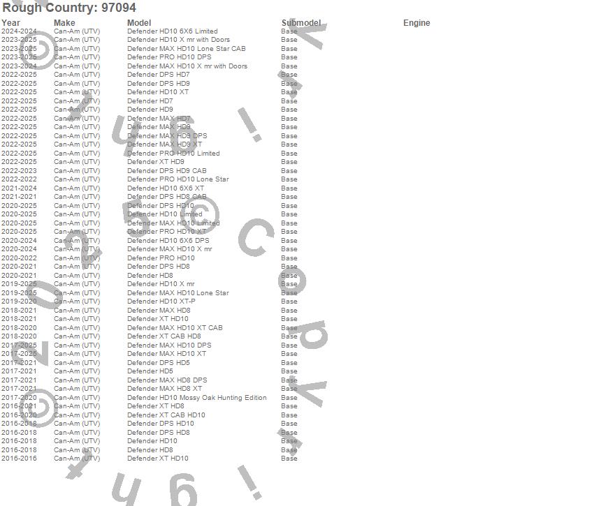 Below is an abbreviated list of applications for the Tail Lights.Defender DPS HD10, Defender DPS HD5, Defender DPS HD7, Defender DPS HD8, Defender DPS HD8 CAB, Defender DPS HD9, Defender DPS HD9 CAB, Defender HD10, Defender HD10 6X6 DPS, Defender HD10 6X6 Limited, Defender HD10 6X6 XT, Defender HD10 Limited, Defender HD10 Mossy Oak Hunting Edition, Defender HD10 X mr, Defender HD10 X mr with Doors, Defender HD10 XT, Defender HD10 XT-P, Defender HD5, Defender HD7, Defender HD8