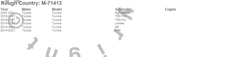 Brand: Rough CountryPart Number: M-71413Floor Mat Set Type: Front And Rear - 3 pc.UPC: 843030118426