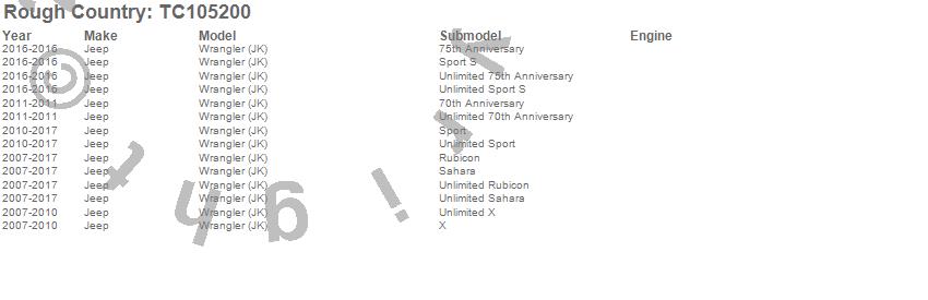 Below is an abbreviated list of applications for the Trail Cladding Hood Protector.Wrangler (JK), Jeep, 2017, 2016, 2015, 2014, 2013, 2012, 2011, 2010, 2009, 2008, 2007