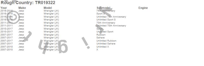 Below is an abbreviated list of applications for the Heavy Duty Steering Kit.Wrangler (JK), Jeep, 2017, 2016, 2015, 2014, 2013, 2012, 2011, 2010, 2009, 2008, 2007