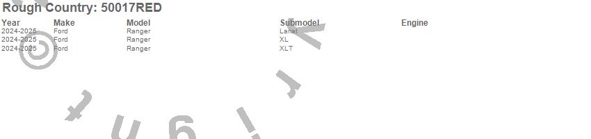 Brand: Rough CountryPart Number: 50017REDControl Arm Type: Forged Upper - OE Upgrade - Red - Solid - PairUPC: 840269972829