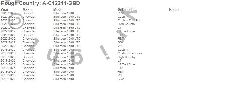 Below is an abbreviated list of applications for the Fender Flares.Silverado 1500, Silverado 1500 LTD, Chevrolet, 2025, 2024, 2023, 2022, 2021, 2020, 2019