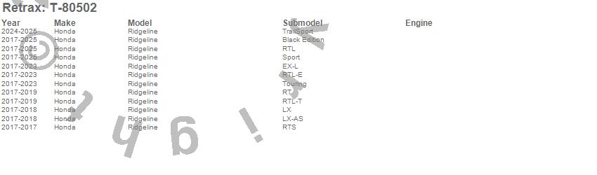 Below is an abbreviated list of applications for the RetraxPRO XR Retractable Tonneau Cover.Ridgeline, Honda, 2026, 2025, 2024, 2023, 2022, 2021, 2020, 2019, 2018, 2017