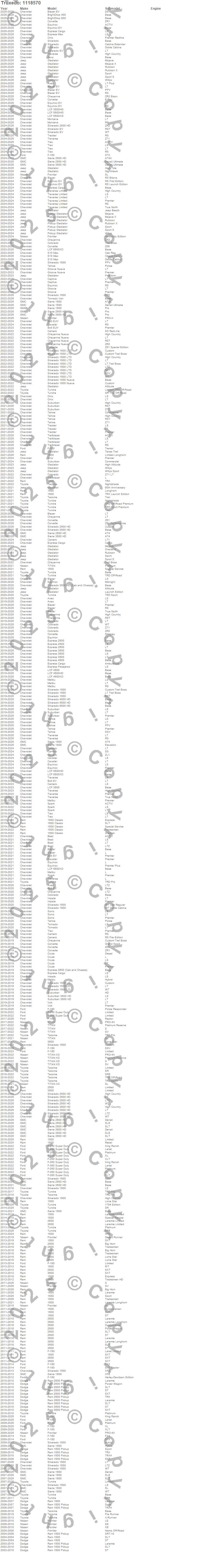 Below is an abbreviated list of applications for the Elevate FS Rack System.1500, 1500 Classic, 2500, 3500, Aveo, Beat, Blazer, Blazer EV, Bolt EUV, Bolt EV, BrightDrop 400, BrightDrop 600, Camaro, Captiva, Cavalier, Cheyenne, Cheyenne Nueva, Colorado, Corvette, Cruze