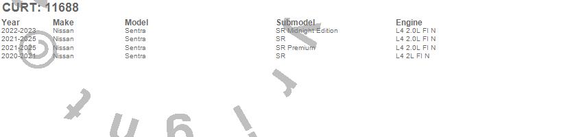 Brand: CURTPart Number: 11688Trailer Hitch Type: Rear - 2000lbs. Gross Trailer Weight - 200lbs. Tongue WeightUPC: 612314059584