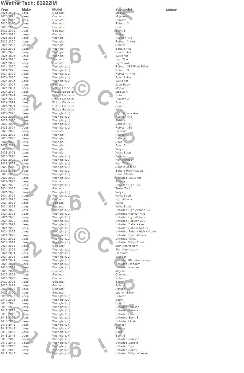 Below is an abbreviated list of applications for the Side Window Deflector.Gladiator, Pickup Gladiator, Wrangler, Wrangler (JL), Jeep, 2026, 2025, 2024, 2023, 2022, 2021, 2020, 2019, 2018